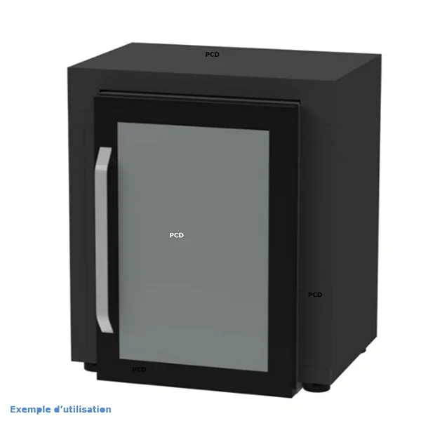 Un meuble de 80 x 55cm, doté d’un espace ouvert sous le plan de travail pour y installer une cave à vin, un frigo de dimension maximale L60xP60xH85, des plantes etc…