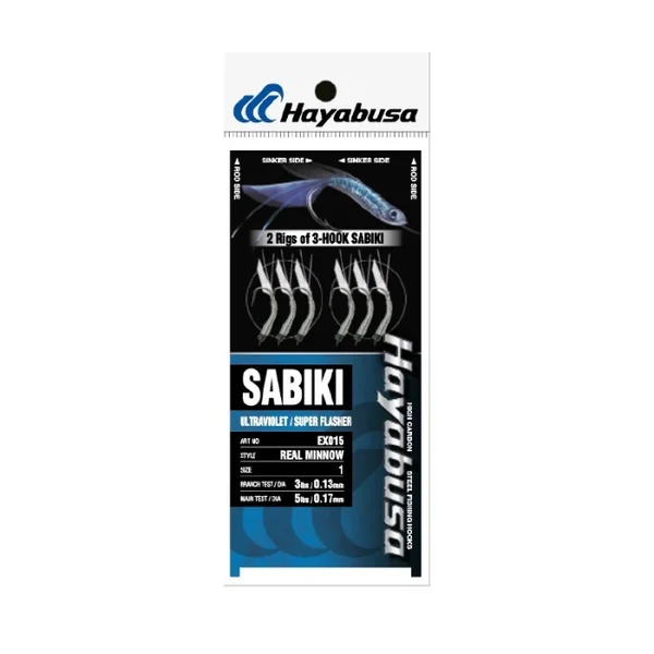 Mitraillette Hayabusa Sabiki EX015 Le Sabiki EX015 est un bas de ligne avec 3 mouches de type alevins aux reflets irisés. Corps et queue sont en peau traitée UV une longueur d’onde visible par les poissons qui les attire sur de grandes distances. Le montage de trois empiles permet un gain d’efficacité lors de la mise en œuvre et du décrochage des pois-sons. Avis Mitraillette Hayabusa Sabiki EX015 Écrivez votre avis