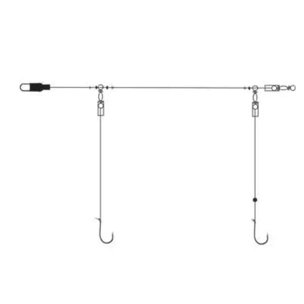 Ce montage de la gamme Rig Atlantic posède 2 grandes empiles, une empile haute de 2,50 m et une empile basse identique de 2,50 m. Ces montages sont réalisés avec des fluorocarbones Invisible 3G qui ne vrillent pas et sans mémoire.