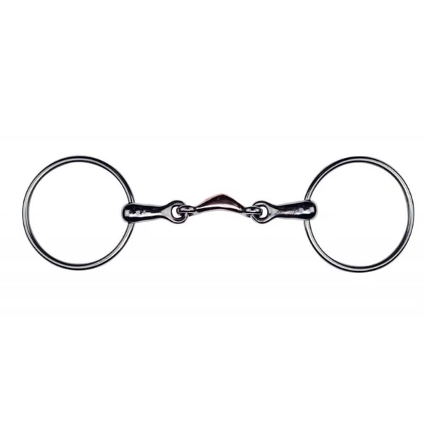 Mors à double brisure en 1/4 de lune. Doux et décontractant, il convient bien aux chevaux ayant un palais étroit ou une langue un peu forte. Ce mors 2 anneaux est une embouchure simple et douce. Les canons coulissent librement dans les anneaux. C’est un mors très léger qui convient généralement à tous les chevaux, à la bouche sensible ou jeunes.