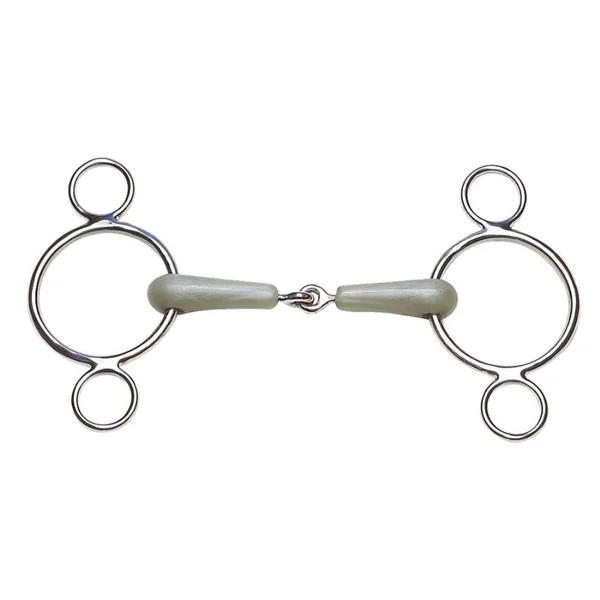 Mors réglable à 3 anneaux muni d’une résine parfumée à la pomme favorisant la salivation et donc la décontraction de la bouche. Idéal pour les jeunes chevaux ou les chevaux refusant le contact du métal.