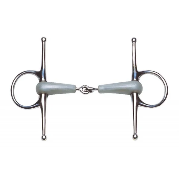 Mors à aiguilles recouvert d’un matériau synthétique haute technologie légèrement parfumé à la pomme pour un goût plaisant dans la bouche du cheval et coloré pour une touche fun. Il favorise la direction et canalise la bouche. Les aiguilles présentent sur les côtés du mors encadrent très fortement le nez du cheval. Les actions de main du cavalier vont pousser le nez du cheval en latéral pour l’aider à tourner. C’est le mors par excellence des jeunes chevaux, des débourrages mais aussi de la longes et des longues rênes par exemple.