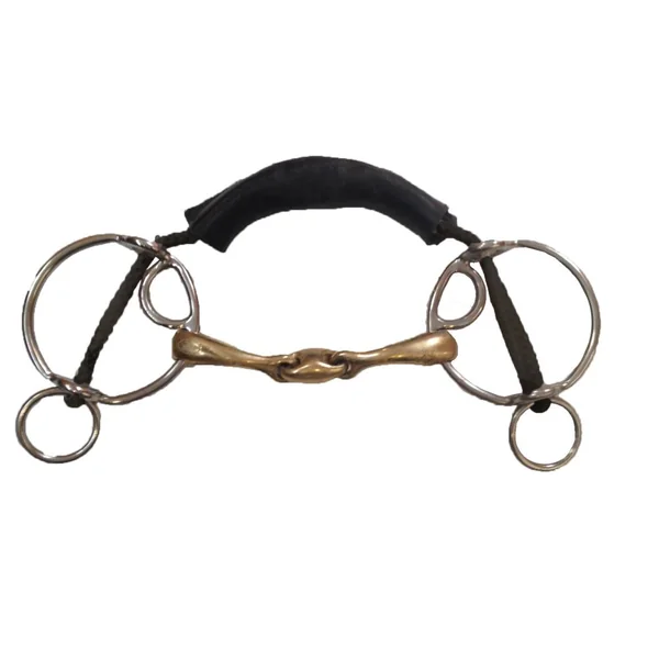 Releveur combiné à double brisures. Ce mors permet de faire basculer le cheval sur l’arrière main. La pression de la nuque est diminuée par l’effet de la gourmette.