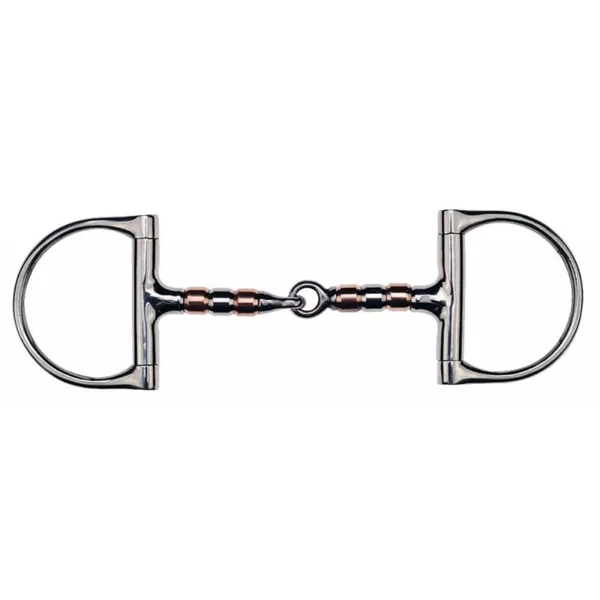 La forme en D de cette embouchure permet de mieux canaliser son cheval. Provoque un effet décontractant par la libération d’ions provoquant des légers picotements qui aident le cheval à saliver. Le fait de saliver pour un cheval est un des signes de la décontraction de la mâchoire.