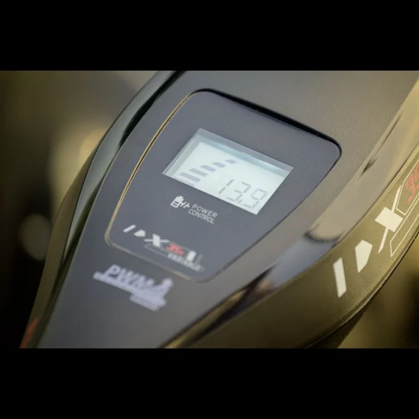 Les moteurs Rhino DX dispose d’un afficheur numérique vous donnant en direct la tension de votre batterie ainsi que le niveau de celle-ci. Plus aucun risque de tomber en panne de batterie.