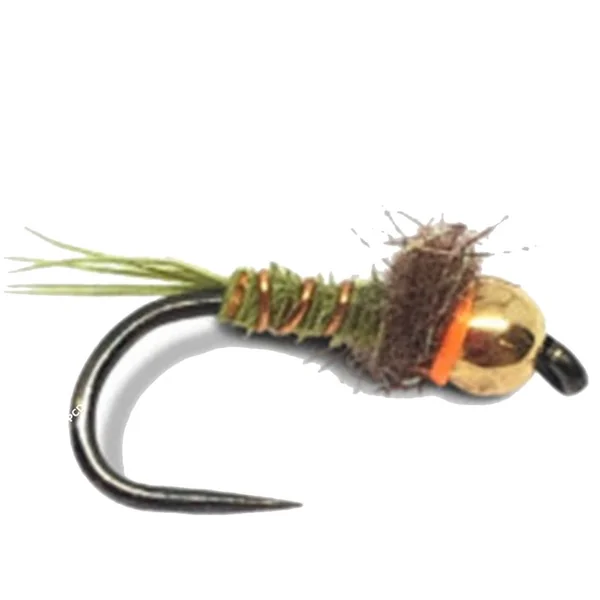 Mouche L’Olive, de type nymphe, avec une bille en laiton, de marque Laurent Jauffret.