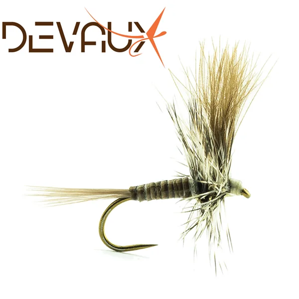 Ces mouches sèches sont montées avec une collerette en plume de coq rabattue par dessous et un toupet en croupion de canard qui leur confère une flottaison excellente.