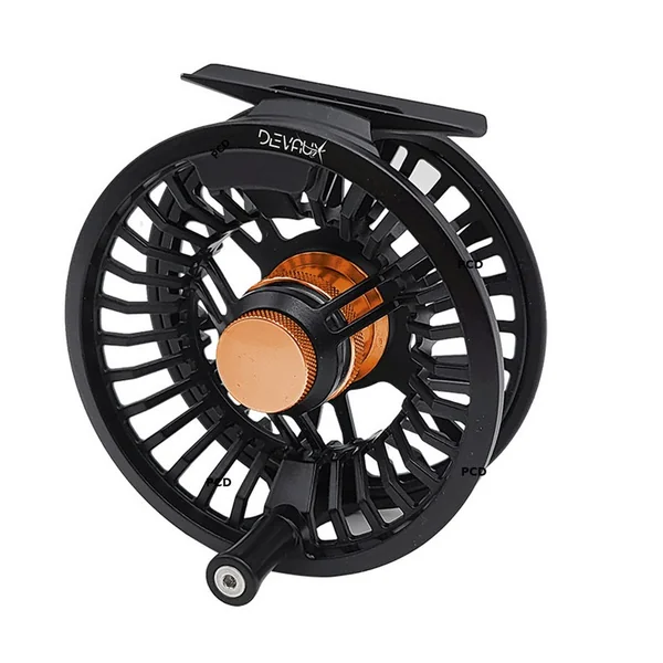 Le moulinet D606, de marque Devaux, réalisé en aluminium injecté pour le bâti et la bobine en noir mat.