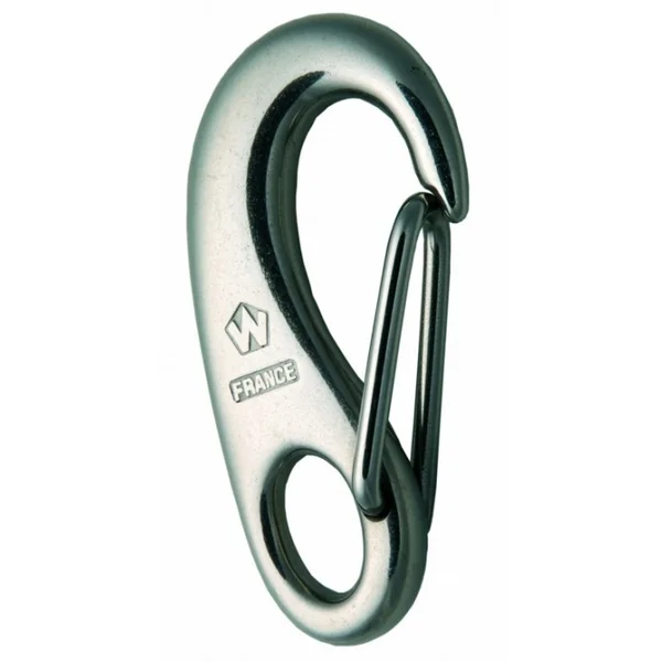Le mousqueton de sécurité WICHARD utilise bien sûr le fameux ressort de torsion breveté par Wichard et le design permet une ouverture facile avec une seule main.