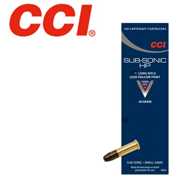 MUNITIONS CCI 22LR SMALL GAME SUB-SONIC HP 40 Grains PAR 100 : Dernier exemplaire !!! Caractéristiques : -Les munitions CCI sont connues et reconnues dans les milieux du tir, tant par les compétiteurs en entraînement que par les usagers des stand de tir occasionnels. -Poids : 2,6g. -40 grains. -Vitesse à 0m : 320m/s. -Ogive : Hollow Point Plomb. -Boîte de 100 pièces. *MUNITIONS SOUMISE A LA LEGISLATION : Carte d’identité + Permis de chasse OU Licence de tir valides OBLIGATOIRES. *AUCUNE LIVRAISON NE POURRA INTERVENIR SANS PIECES JUSTIFICATIVES.