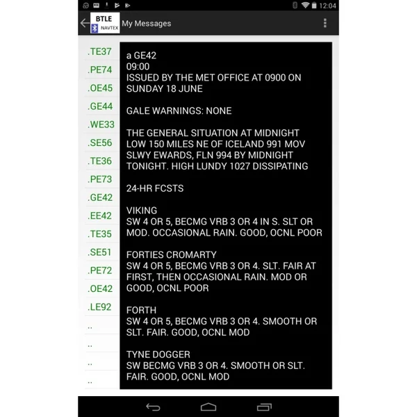 Une application Android permet à l’utilisateur de rechercher les messages stockés ou de programmer l’appareil pour afficher uniquement les types de messages désirés à partir des stations sélectionnées (App IOS payante). Avis Navtex NASA BT-3 Bluetooth + antenne série 2 Écrivez votre avis