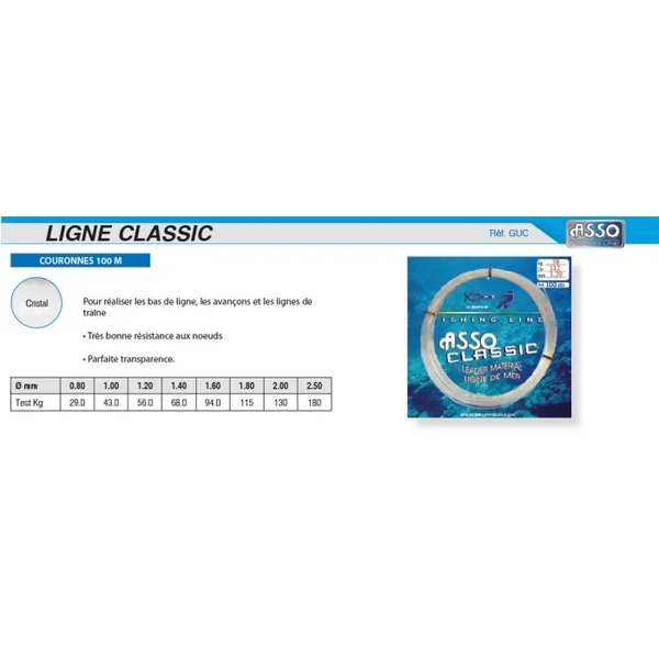 • Parfaite transparence. Avis Nylon Asso Ligne de Mer Classic Couronne 100 m 250/100 Écrivez votre avis