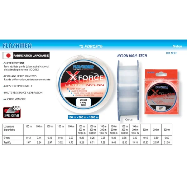 • AUCUNE MÉMOIRE Avis Nylon Flashmer X Force 100 m 30/100 Écrivez votre avis