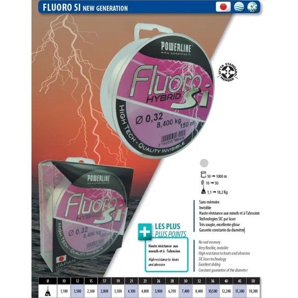 Nylon Powerline Fluoro SI Hybrid 50 m Nylon Powerline Fluoro SI New génétation