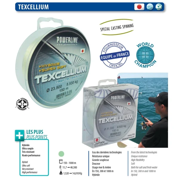 Nylon Powerline Hybride Texcellium 300 m 20,5/100 – 4,36 kg Nylon Powerline hybride Texcellium aux multiples qualités