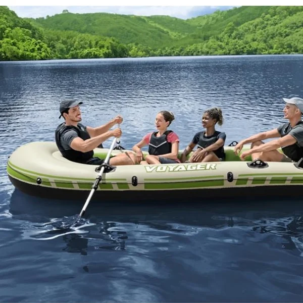 Pack bateau gonflable 4 places Hydro-Force Voyager X4 Idéal pour la pêche, ce bateau facile d’utilisation et pratique à transporter et stocker.