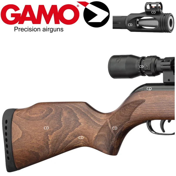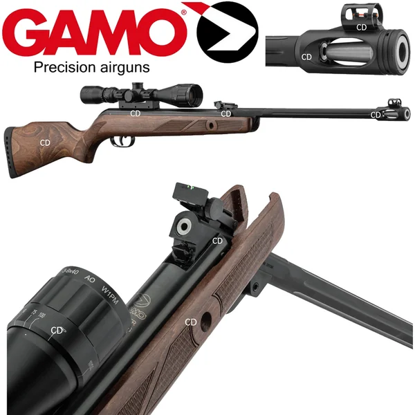 PACK CARABINE GAMO HUNTER 440 AS 19.9J + LUNETTE 3-9X40 WR :Caractéristiques :-Carabine de jardin, à air comprimé, de marque GAMO, HUNTER 440 AS. -Canon en acier gainé polypro, avec AIR STOPPER pour stabiliser le plomb en sortie de canon.-Carabine équipée d’un rail prismatique de 11mm pour le montage de la lunette mais également d’une visée ouverte à fibre optique et guidon protégé par tunnel.-Armement par bascule du canon (Break barrel), canon basculant donc. -Livrée en pack avec la lunette GAMO 3-9X40 WR. (+ montage)*Caractéristiques Techniques :-Calibre : 4,5mm.-Crosse et devant bois.-Puissance de 19.9 joules.-Plaque de couche.-Armes de catégorie D.-Longueur totale : 110cm.-Vitesse : 280m/s.-Poids 3Kg150.*ARME SOUMISE A LA LEGISLATION : Carte d’identité OBLIGATOIRE.*AUCUNE LIVRAISON NE POURRA INTERVENIR SANS PIECE JUSTIFICATIVE.