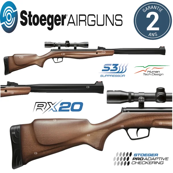 Ce pack se compose d’une carabine RX20 S3 Suppressor Bois de marque Stoeger Airguns et d’une lunette 4X32 de même marque.