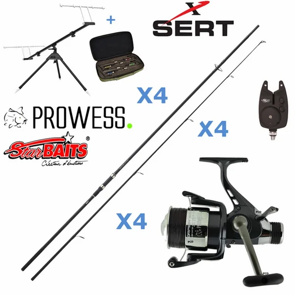 *Ce PACK CARPE CARBONE DEBRAYABLE MEDIUM INSTINCT 4 Cannes se compose de 4 cannes SERT Instinct Carp 3M60 3Lbs, de 4 moulinets débrayables PROWESS Scorpium 6001 FD, de 4 détecteurs bleus Carp Spirit Classic, d’un ROD POD Basic 3/4 Cannes Classic Maxi, d’une épuisette de même marque et d’un Coffret 4 swingers lumineux.