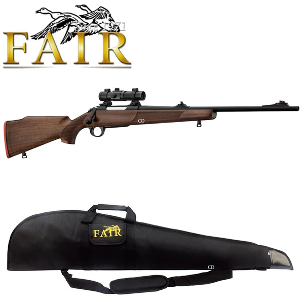 PACK COMPLET BATTUE CARABINE FAIR FILETEE 308WIN :*Garantie 5 ans.*Ce pack Battue FAIR comprend :-1 Carabine à verrou FAIR, à canon fileté, calibre 308WIN.-1 Point rouge tubulaires Microdot Bed 4 (Diamètre 30mm)-Embases et colliers de montage. -et 1 Fourreau FAIR noir 122cm.*A savoir sur la Carabine Fair Grande Chasse Canon fileté :-Carabine à répétition, à verrou chromé à 3 tenons.-Canon fileté avec organes de visée.-Guidon fibre optique rouge.-Chargeur amovible.-Levier darmement à boule.-Crosse en bois poncé huilé avec plaque de couche caoutchouc.-2 grenadières pré-montées.*Le verrouillage à 3 tenons permet deux avantages :-Une répartition plus homogène de la pression pour plus de sécurité.-Une réduction de langle de verrouillage, ce qui permet un réarmement plus rapide grâce une amplitude réduite du mouvement.*Caractéristiques techniques :-Calibre 308 Win.-Nombre de coups : 4 (3+1).-Longueur du canon : 56cm.-Filetage : M14X100.-Poids (carabine seule ): 3kg300.-Poids du pack : 4kg000.-Catégorie C.*Prix de vente conseillé 2018 : 1330€.*ARME SOUMISE A LA LEGISLATION : Carte d’identité + Permis de chasse OU Licence de tir valides OBLIGATOIRES.*AUCUNE LIVRAISON NE POURRA INTERVENIR SANS PIECES JUSTIFICATIVES. Normal 0 21 false false false FR X-NONE X-NONE /* Style Definitions */ table.MsoNormalTable {mso-style-name: »Tableau Normal »; mso-tstyle-rowband-size:0; mso-tstyle-colband-size:0; mso-style-noshow:yes; mso-style-priority:99; mso-style-parent: » »; mso-padding-alt:0cm 5.4pt 0cm 5.4pt; mso-para-margin-top:0cm; mso-para-margin-right:0cm; mso-para-margin-bottom:10.0pt; mso-para-margin-left:0cm; line-height:115%; mso-pagination:widow-orphan; font-size:11.0pt; font-family: »Calibri », »sans-serif »; mso-ascii-font-family:Calibri; mso-ascii-theme-font:minor-latin; mso-hansi-font-family:Calibri; mso-hansi-theme-font:minor-latin; mso-fareast-language:EN-US;}