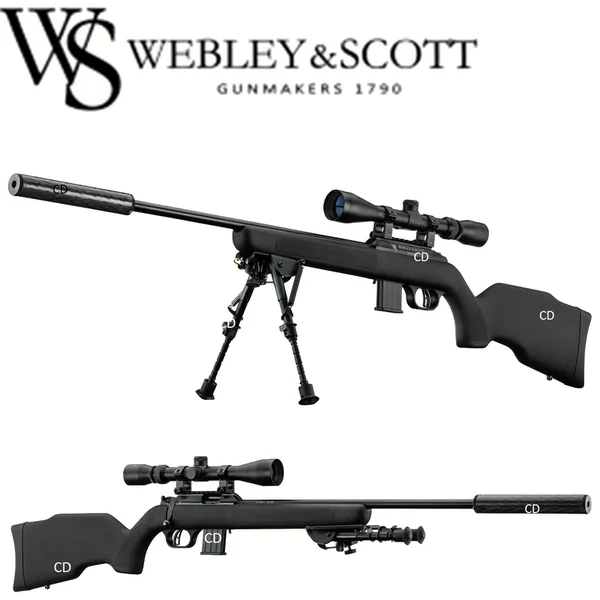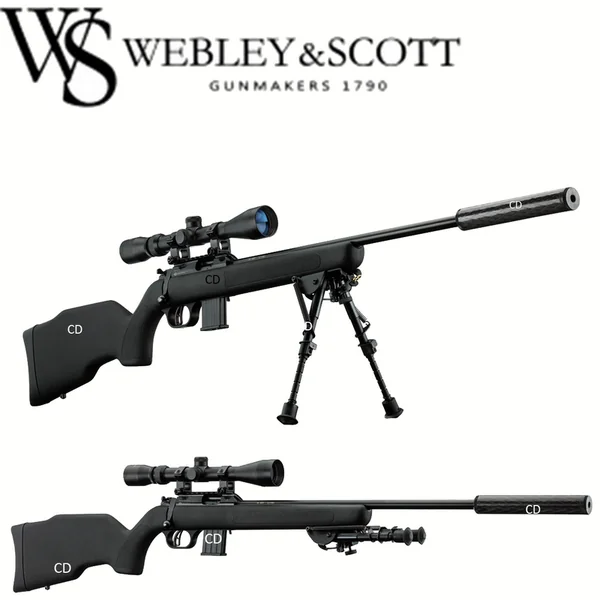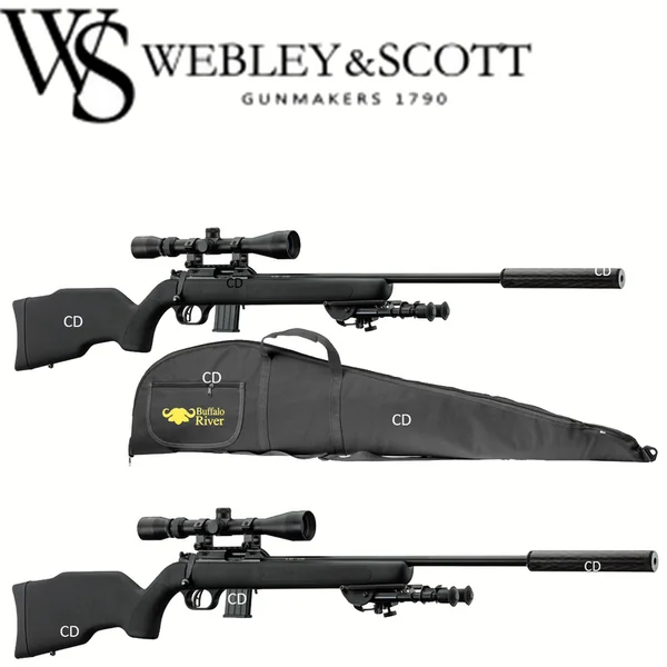 PACK COMPLET WEBLEY&SCOTT 22LR :*Garantie 2 ans.*Ce pack se compose de :-1 Carabine Webley&Scott calibre 22LR,-1 Lunette de tir 3-9×40 RTI,-1 Montage Fixe à collier diamètre 25.4mm,-1 Fourreau Buffalo River,-1 Bipied Télescopique,-et 1 silencieux Carbone.*A savoir sur la Carabine WEBLEY&SCOTT 22 LR :- L’alliance de la tradition armurière anglaise de Webley & Scott avec les nouvelles technologies au service de la précision.-Carabine à répétition manuelle.-Chargeur amovible de 10 cartouches.-Canon de 48cm, en acier.-Canon fileté 1/20 pour le montage d’un modérateur de son.-Culasse munie de 2 griffes dextraction.-Détente squelette.-Crosse synthétique noire de 355mm.*Fournie dans ce pack avec un Fourreau, un Silencieux carbone pour modérer le son sur les stands de tir, un bipied pour plus de stabilité, et une lunette RTI 3-9×40 d’une très grande netteté et de bonne réputation.*Caractéristiques Techniques :-Calibre 22LR.-Capacité : 9+1.-Mécanisme : A verrou.-Crosse : Crosse synthétique noire.-Longueur du canon : 48cm.-Longueur totale : 95,3cm.-Poids : 3Kg400.*Prix de vente conseillé 2018 : 469€. *ARME SOUMISE A LA LEGISLATION : Carte d’identité + Permis de chasse OU Licence de tir valides OBLIGATOIRES.*AUCUNE LIVRAISON NE POURRA INTERVENIR SANS PIECES JUSTIFICATIVES.