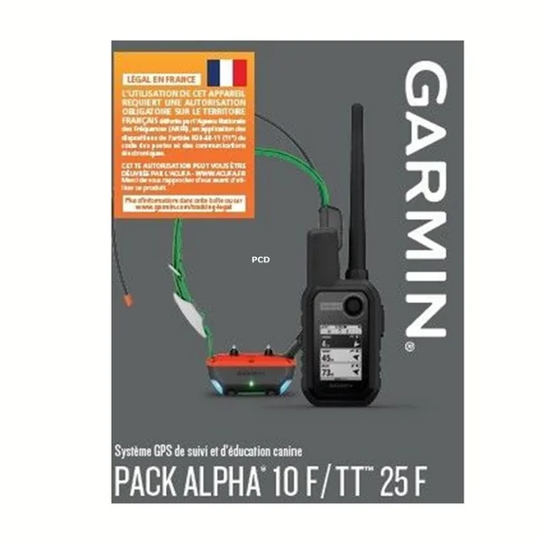 Pack Garmin, composé d’une télécommande Alpha 10 F et d’un collier de repérage TT25 F.