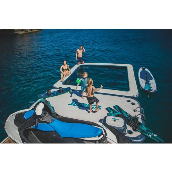 Bienvenue sur la plateforme Jobe Infinity Island, l’ultime destination pour des aventures aquatiques inoubliables ! Avec des dimensions généreuses de 4m de longueur, 4m de largeur et 15cm d’épaisseur, notre île offre un volume impressionnant de 1300 litres tout en restant légère avec un poids de seulement 39 kg. Conçue pour une utilisation sans souci, notre île peut accueillir jusqu’à 700 kg tout en maintenant une pression optimale grâce à sa technologie de liaison thermique et ses valves Halkey Roberts de qualité supérieure.