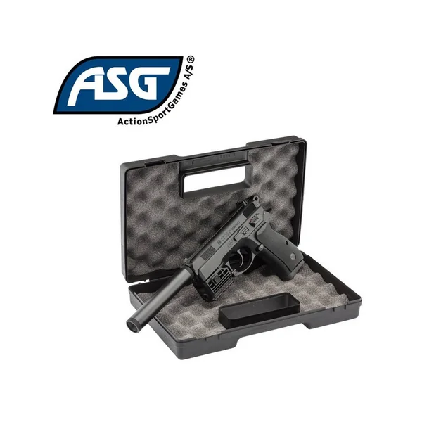 PACK PISTOLET CO2 CZ 75 D ASG : Caractéristiques : *Pack comprenant 1 pistolet 6mm à CO2 CZ 75 D + 1 silencieux + 1 mallette + 1 laser réglable. -Pistolet CZ 75 D. -Fonctionnement par capsule CO2. -15 coups. -Calibre 6mm airsoft. -Canon rayé acier. -Hausse réglable. -Sûreté de détente. -Poignée synthétique quadrillée. -Culasse fixe. -Puissance : 1.4 joules. *Prix de vente conseillé en 2016 : 119.90€. *PISTOLET SOUMISE A LA LEGISLATION : CARTE D’IDENTITE OBLIGATOIRE.