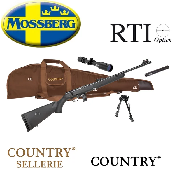 PACK SNIPER MOSSBERG PLINKSTER 802 22LR COMPLET : *Ce pack comprend 1 carabine Mossberg Plinkster 802, calibre 22LR, crosse synthétique, 1 fourreau Country pour carabine avec optique, une lunette Laser RTI 2.5-10X42 (+ colliers), 1 bipied Country 5 positions et 1 silencieux Carbone.*Caractéristiques Carabine Mossberg Plinkster 802 22LR :*Garantie 2 ans.-Carabine 22LR pour le tir de loisir, la destruction des nuisibles ou le tir sportif.-Accepte toutes les munitions 22LR.-Canon fileté pour recevoir un modérateur de son (dit silencieux) pour pratiquer le tir sans déranger le voisinage.-Arme à verrou, répétition manuelle. -Instruments de visée ouverte, rail 11mm (trapèze) pour fixation d’une lunette de tir ou d’un point rouge.-Fabriquée aux USA.-Crosse synthétique avec poignée pistolet.-Rail 11mm usiné sur le dessus de carcasse pour montage d’une lunette.-Rail Picatinny moulé dans la masse de la crosse synthétique pour fixation d’un laser, d’un bipied ou d’une lampe.-Chargeur métallique amovible 9 coups.-Calibre 22LR.-Canon fileté pour montage d’un réducteur de son. (silencieux)-Livrée avec 1 cadenas anti-tiers, 1 chargeur métallique, un écrou de canon pour la protection du filetage de silencieux.-Longueur totale : 99cm.-Longueur du canon : 46cm. *Prix de vente conseillé 2019 : 545€.*ARME SOUMISE A LA LEGISLATION : Carte d’identité + Permis de chasse OU Licence de tir valides OBLIGATOIRES.*AUCUNE LIVRAISON NE POURRA INTERVENIR SANS PIECES JUSTIFICATIVES.