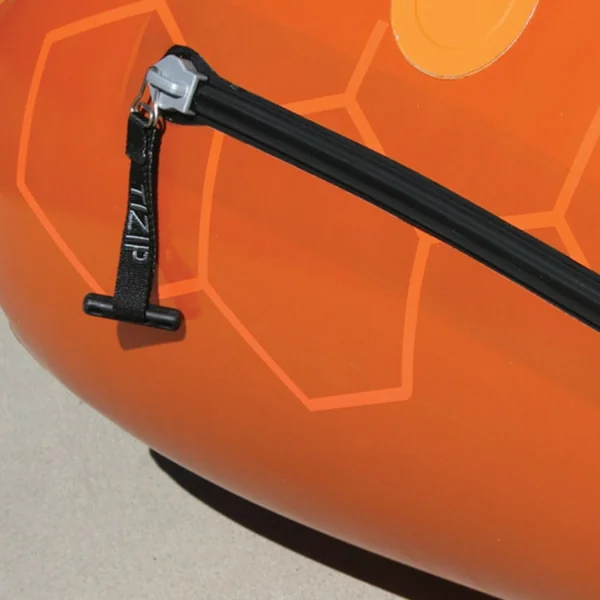 Ce modèle possède également un stockage interne de type Tizip (stockage étanche à l’intérieur de la coque) afin de transporter du matériel sensible. De plus, les anneaux en D à l’avant et à l’arrière du Packraft permettra de venir accrocher le sac à dos, le gonfleur, ou tout autre objet.