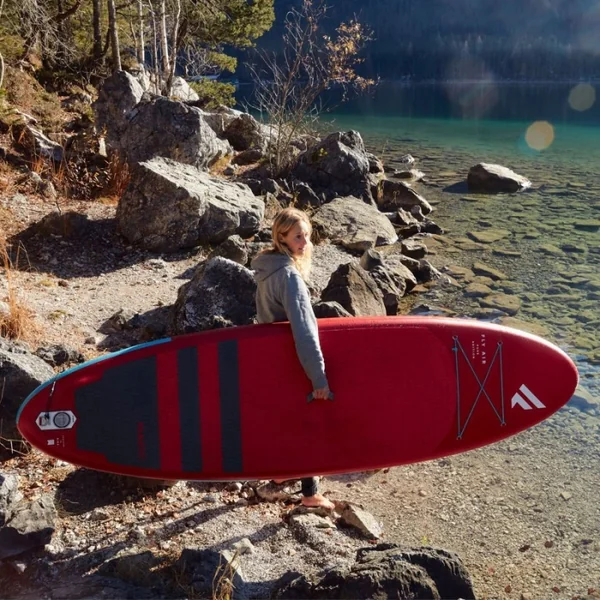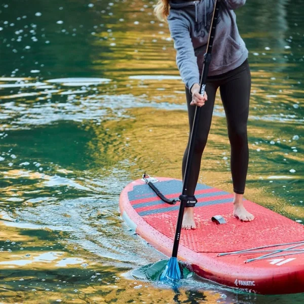 La longueur de la planche de stand up paddle aura un impact sur sa glisse/vitesse et sur les virages. A l’inverse, une planche plus longue sera un peu plus stable du fait que le volume global est plus important, cependant la largeur aura plus d’impact sur la stabilité du stand up paddle. La largeur donc détermine la stabilité de la board. Cependant, d’un point de vue performance, une planche plus large perdra à la fois en prise de vitesse et en aisance pour tourner c’est pour cela que le SUP gonflable Fanatic fly air 10.8 a été créé avec une largeur de 33″ (84 cm).