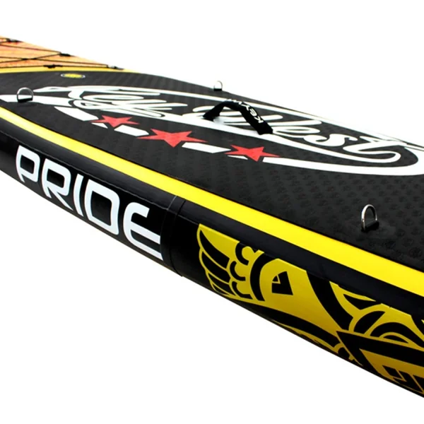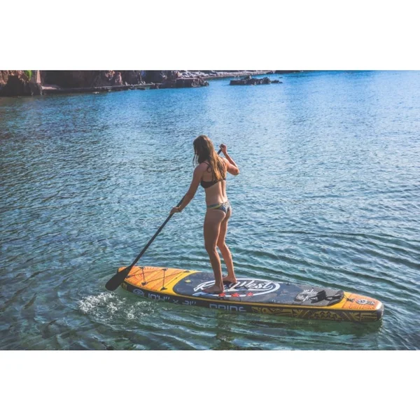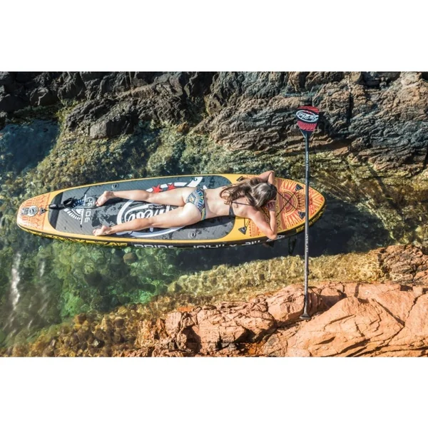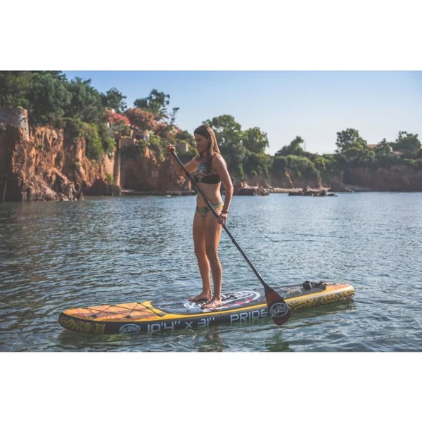 Plateforme de jeu, simple balade ou bête de performance? Tout est possible avec le stand up paddle gonflable Pride, rapide et léger!