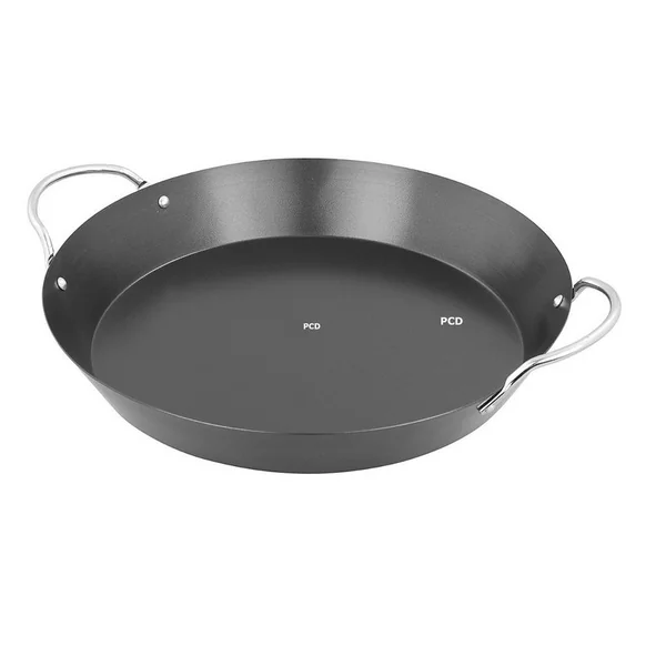 Conçue en acier, cette poêle à paëlla est conçue en acier avec un revêtement anti-adhérent.