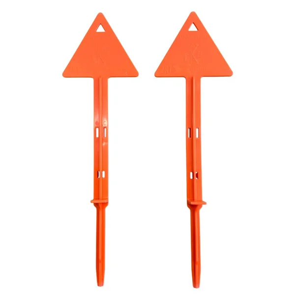 Piquets angulateurs de battue. Hauteur : 45.5 cm. Largeur du triangle : 13 cm. Repose-pied. Coloris: orange. Conditionnement : par 2.
