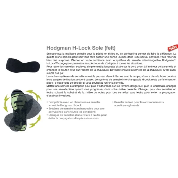 Paire de semelles Hodgman H-Lock Feutre Sélectionnez la meilleure semelle pour la pêche en rivière ou en surfcasting permet de faire la différence.