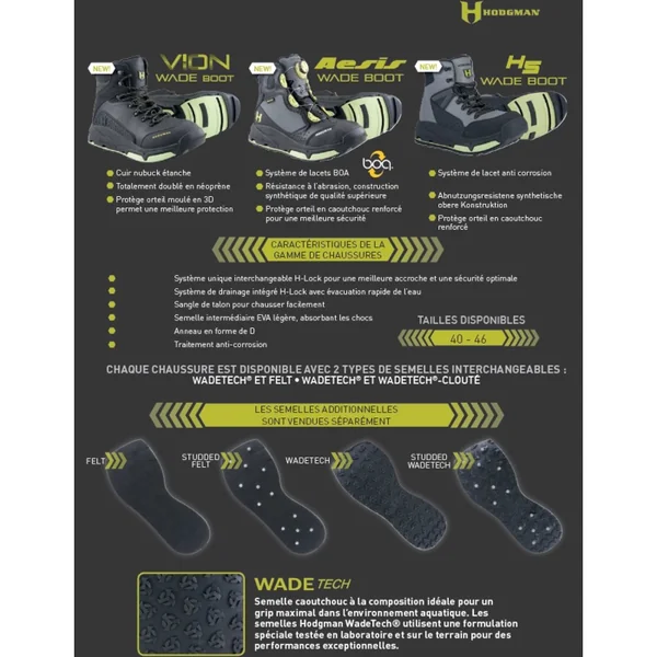 Compatible avec les chaussures à semelle amovible Hodgman H-Lock