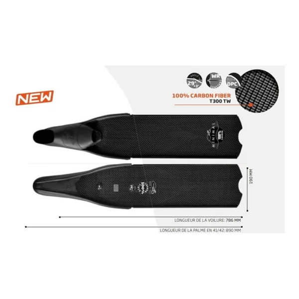 Les palmes MINIMAL sont fabriquées en 100% fibre de carbone T300.