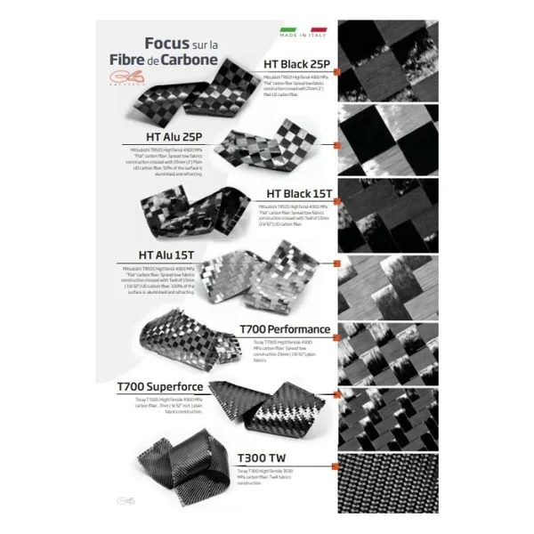 Il existe de nombreux types de fibre de carbone qui diffèrent par leur résistance et leur module élastique. De bonnes voilures doivent être solides, et en même temps être souples et réactives. Ces caractéristiques s’obtiennent en utilisant des fibres de carbone à haut
