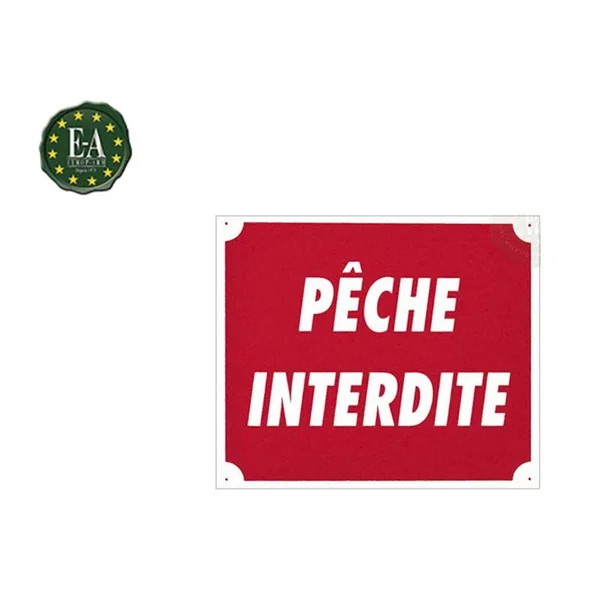 PANCARTE PECHE INTERDITE : Caractéristiques : -Pancarte « Pêche interdite ». -Taille : 30 x 25cm. *Disponible en version Akylux ou Aluminium.