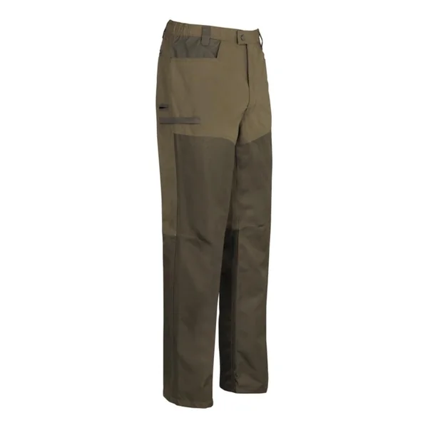 Composition : 65% polyester, 35 % coton, membrane polyuréthane, imperméable et respirante, coutures étanches. Renforts 100% polyester imperméables et résistants. Doublure 65% polyester, 35% coton. 6 poches dont 1 poche couteau. Ceinture antiglisse élastiquée. Genoux préformés. Coloris : kaki. Tailles : du 38 au 54.