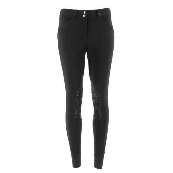 Le pantalon d’équitation Élégance Pénélope est une pièce à la fois raffinée et fonctionnelle, parfaite pour les cavalières exigeantes que ce soit à l’entraînement, au quotidien ou aux écuries. Son design soigné se distingue par un rang de strass élégant ornant la sur-ceinture, ainsi que les bords des poches avant et arrière. Un motif en strass représentant un petit cheval Pénélope est placé discrètement sur la jambe gauche. Confectionné dans un tissu stretch, ce pantalon offre un confort exceptionnel. Il est doté de renforts antidérapants à l’intérieur des genoux pour une meilleure stabilité en selle et d’une taille légèrement haute, bien ajustée. Le bas de la jambe, en lycra, garantit une adaptation parfaite à toutes les morphologies. Conseils pratiques : Taille : Ce modèle taille normalement, choisissez votre taille habituelle.