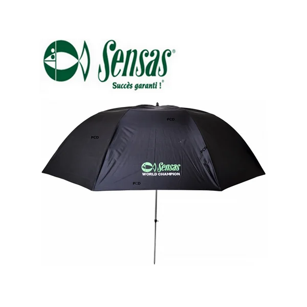 Superbe parapluie, de marque Sensas, pour vous protéger vous-même ainsi que vos esches, amorce et matériel de la pluie ou du soleil !