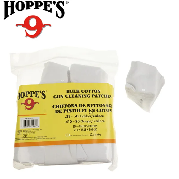 Patch de nettoyage Hoppe’s N°4 – C/.38 à C/.45 et C/.410 à C/20 – 500 pièces.Patch uniformément tissés.Ultra-absorbant.Calibres prédécoupés.