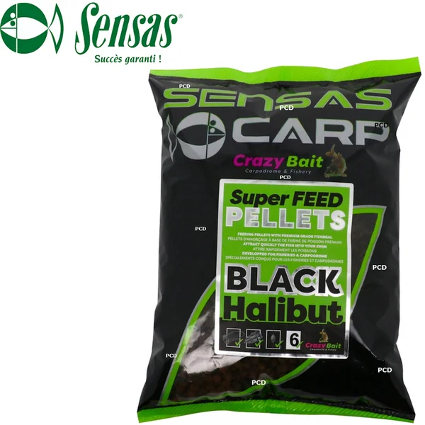 PELLETS SENSAS SUPER FEED PELLET BLACK HALIBUT 6MM 700G