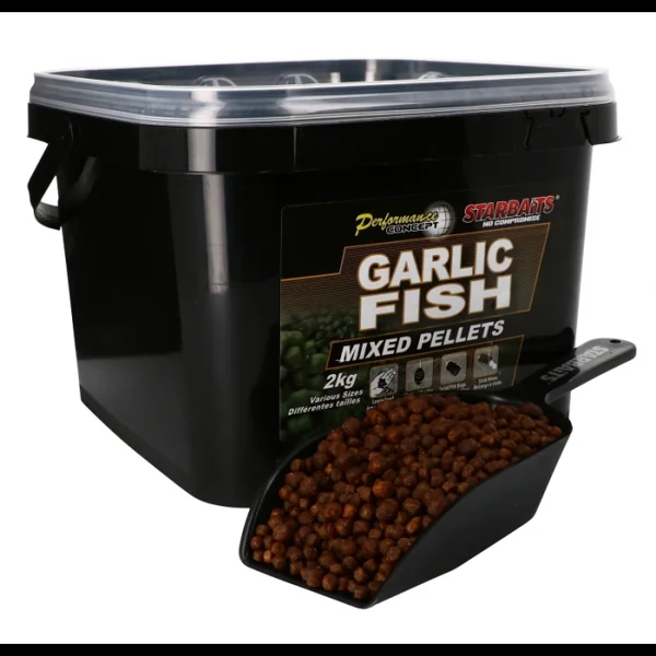 Pellets Starbaits Performance Concept Garlic Fish Pellets – 2kg Les Garlic Fish sont des appâts issus de l’association de diverses farines de poissons avec une épice légendaire qu’on ne présente plus: l’ail! L’ emploi de poudres et d’huiles essentielles accentue considérablement sa diffusion et son aspect gustatif augmentant ainsi le marquage de la zone amorcée et de fait la fixation des poissons.