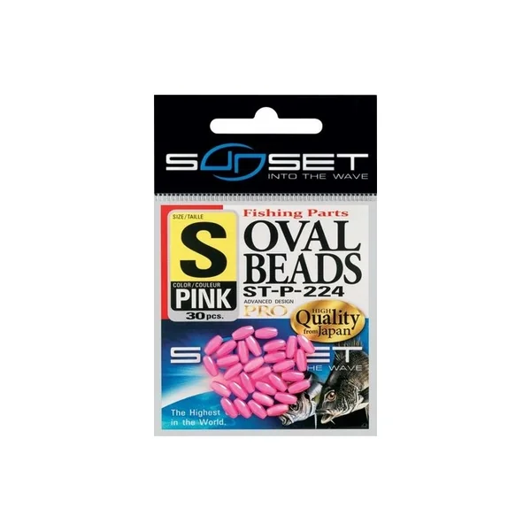Perles Ovales Dures Sunset Beads Pink ST-P-224 Taille M Tout comme les ST-P223, les perles roses ST-P-224 sont destinées à maintenir une perle rotative T-Holes ST-P-405 directement sur le corps de ligne pour effectuer un montage de 2 ou 3 empiles. Elles peuvent être utilisées sur le bas de ligne devant un vers ou une Néréide.