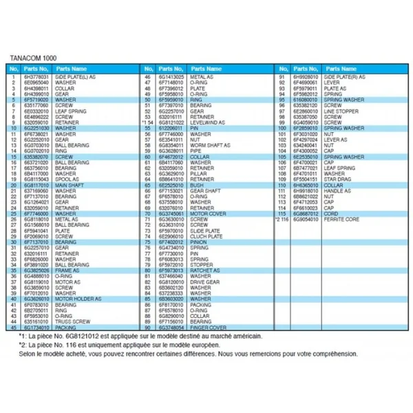 Pièce détachée Moulinet Daiwa Tanacom 1000 – Pièce 7F591901 Set Plate Pièce détachée Daiwa tanacom 1000