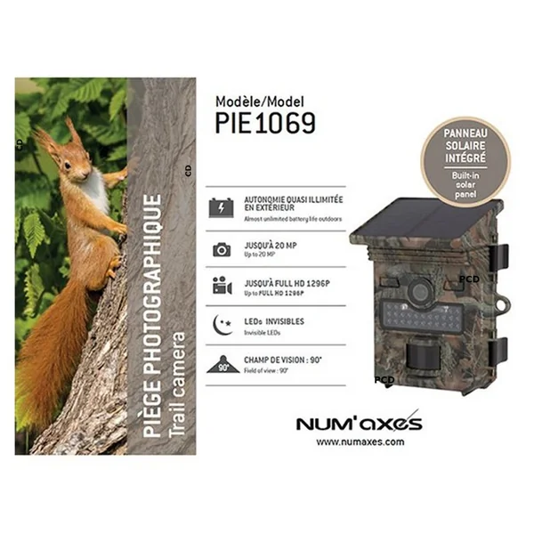 Piège photographique PIE1069 avec panneau solaire intégré, de marqueNum Axes.