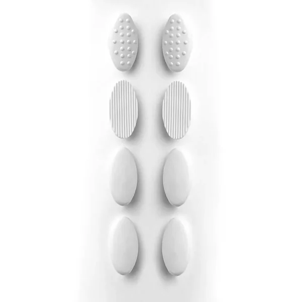 Comme la version aluminium, le ZETA Plastic est fourni avec quatre types de patins en caoutchouc souple, faciles à échanger pour adapter la pince à chaque utilisateur.