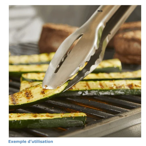 La poignée à revêtement doux permet de déplacer facilement un lourd carré de côtes tandis qu’avec la forme aplatie du bord avant est pratique pour glisser la pincez facilement sous les aliments délicats tels que les légumes ou le poisson.